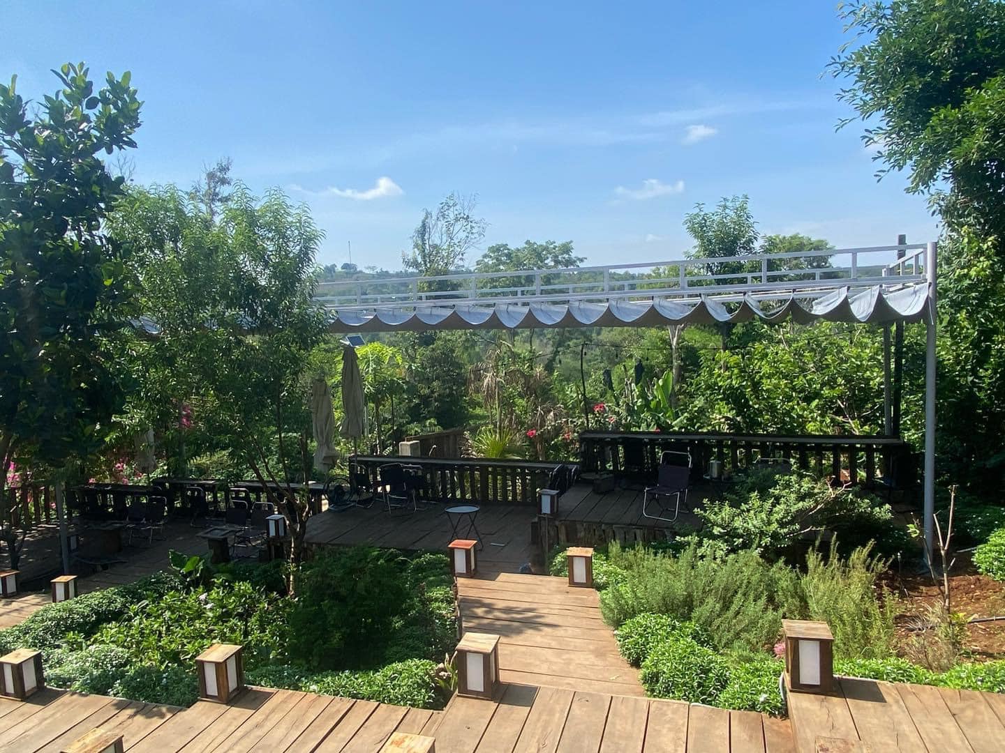 - Điều hòa không khí tự nhiên: Khác với mái tôn hay bê tông, bạt che sân vườn giúp giảm nhiệt độ khu vực bên dưới đáng kể. Nhờ khả năng lưu thông khí tốt (đặc biệt với các loại bạt lưới), không gian sân vườn của bạn sẽ luôn thông thoáng, không gây cảm giác hầm bí.