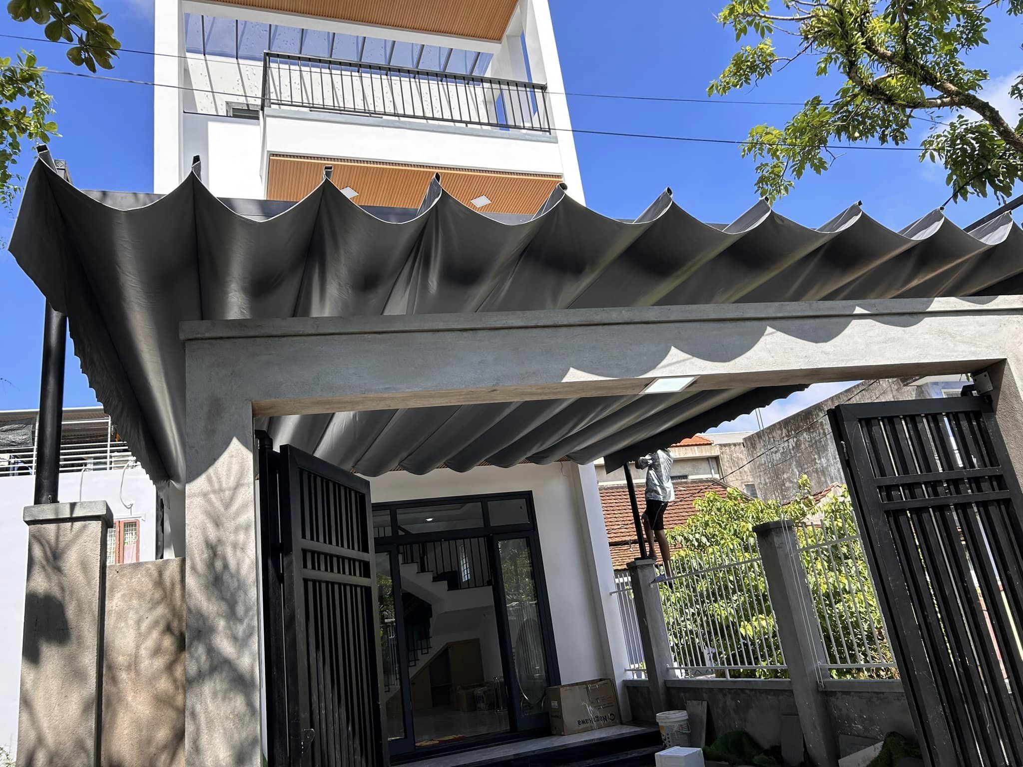 Vận hành linh hoạt: Sử dụng cơ cấu tay quay cơ học, giúp việc đóng mở mái che trở nên nhẹ nhàng và chủ động theo nhu cầu sử dụng thực tế.