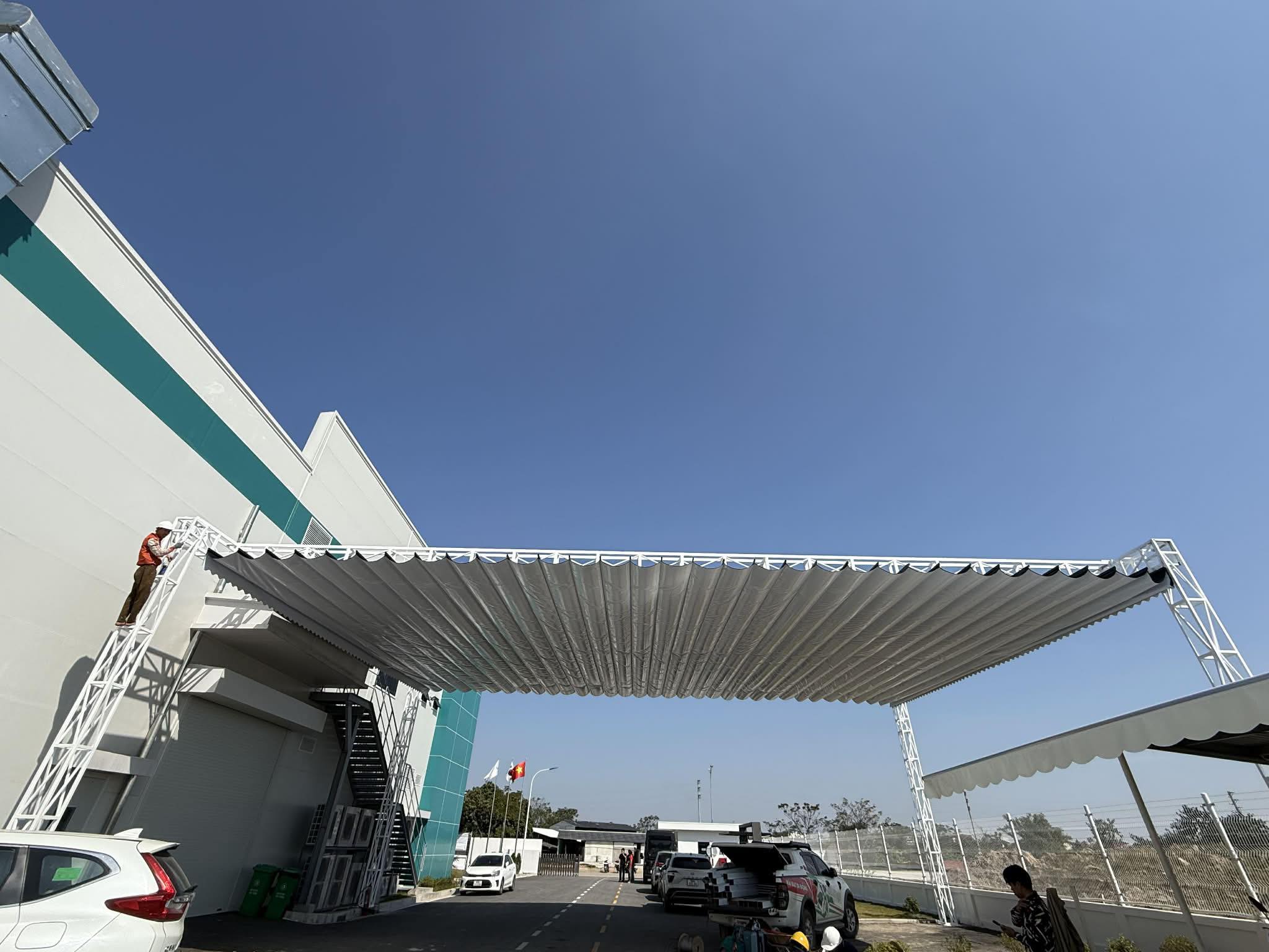 - Tối ưu hóa chi phí đầu tư: Chi phí lắp đặt một hệ thống mái xếp thấp hơn nhiều so với xây dựng nhà để xe bằng mái tôn khung thép kiên cố hay nhà kho bê tông. Bạn không cần xin giấy phép xây dựng phức tạp, thời gian thi công nhanh chóng (thường chỉ mất 1-2 ngày), giúp tiết kiệm đáng kể chi phí nhân công và vật liệu.