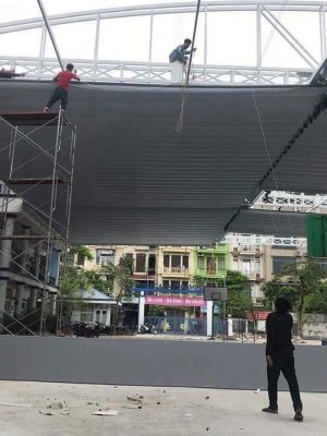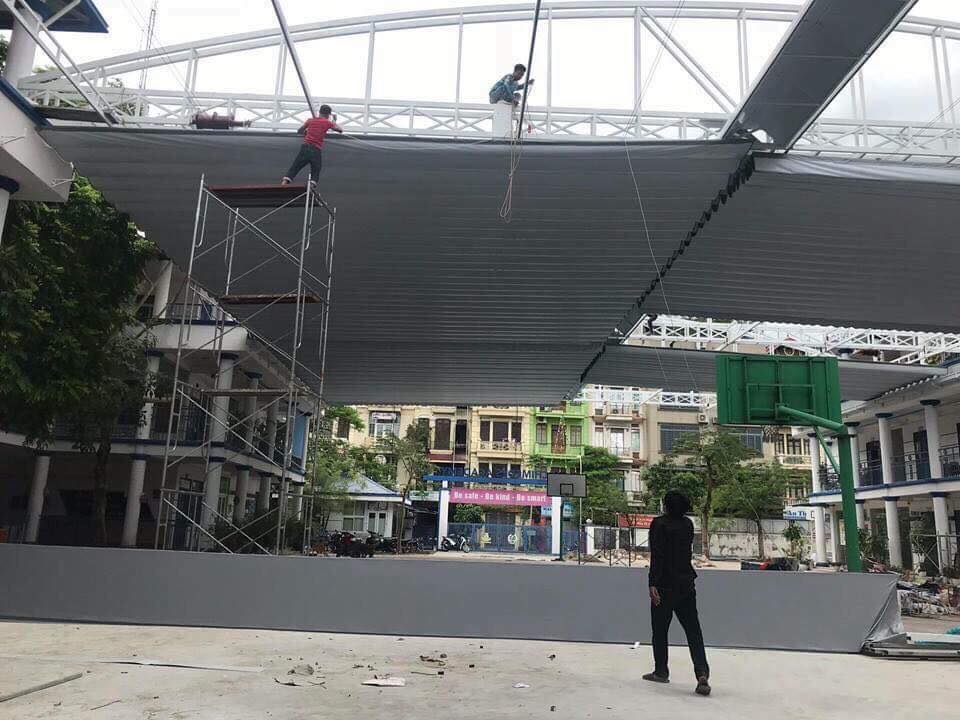 [Báo giá] Bạt mái xếp lượn sóng, Giá thi công mái bạt xếp lượng sóng che nắng mưa ngoài trời