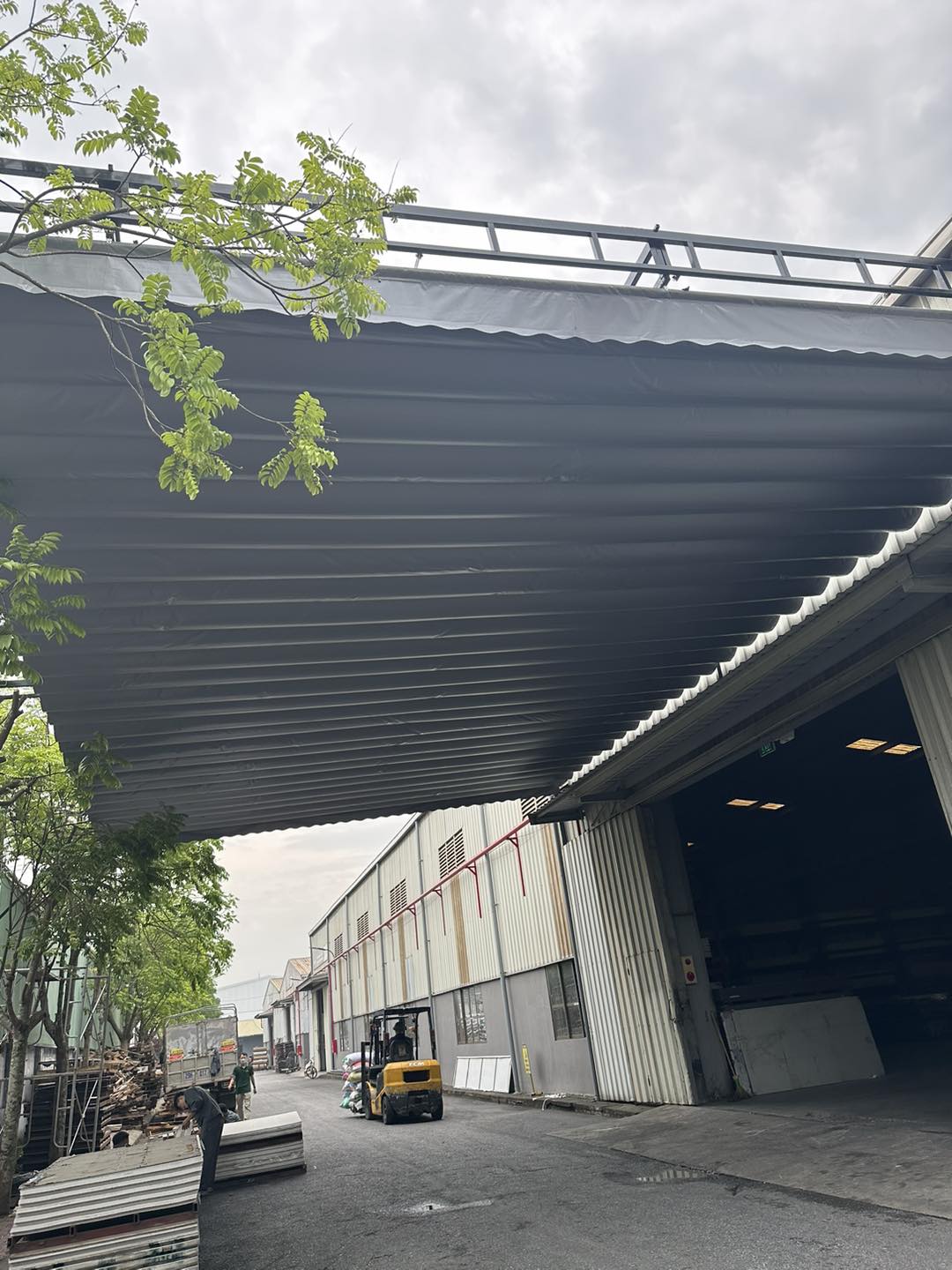 Đối với nhà xưởng và kho bãi, nơi thường xuyên cần không gian mở để luân chuyển hàng hóa hoặc thông gió, mái bạt xếp mang đến tính năng “che mưa, nắng” khi cần thiết và trả lại không gian thoáng đãng chỉ trong vài giây.