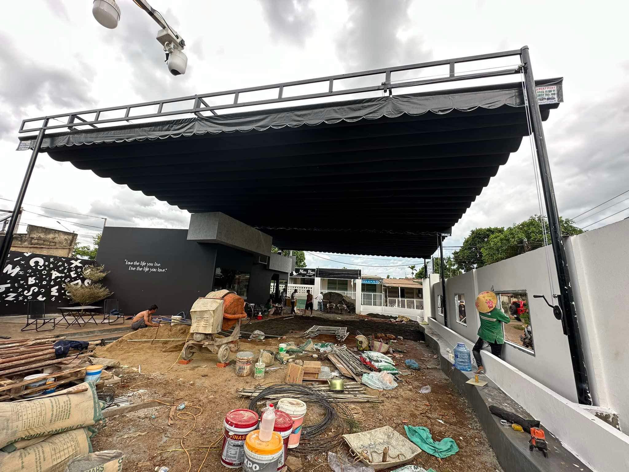 Chống gió bão: Do đặc thù khu vực, cần yêu cầu đơn vị thi công gia cố hệ thống khung trụ chắc chắn bằng thép hộp dày (ví dụ: sắt 50x100mm trở lên) và hệ thống cáp neo giữ bạt.
